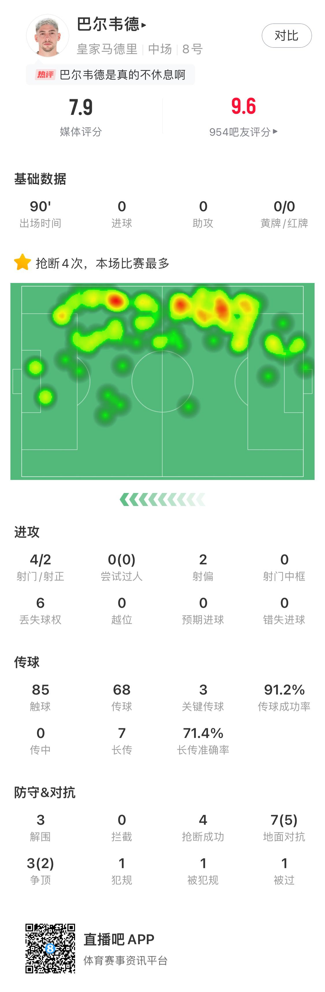 02月06日訊 國王杯1/4決賽,皇馬3-2絕殺萊加內(nèi)斯晉級。巴爾韋德首發(fā)踢右后衛(wèi),打滿全場。現(xiàn)年26歲的巴爾韋德本賽季近乎全勤,各項賽事36次出場,總出場時間3027分鐘。近一個月,巴爾韋德出戰(zhàn)10場比賽,9次首發(fā),其中6場踢滿全場、1場92分鐘下場。 本文標(biāo)簽: 足球 西甲 皇家馬德里
