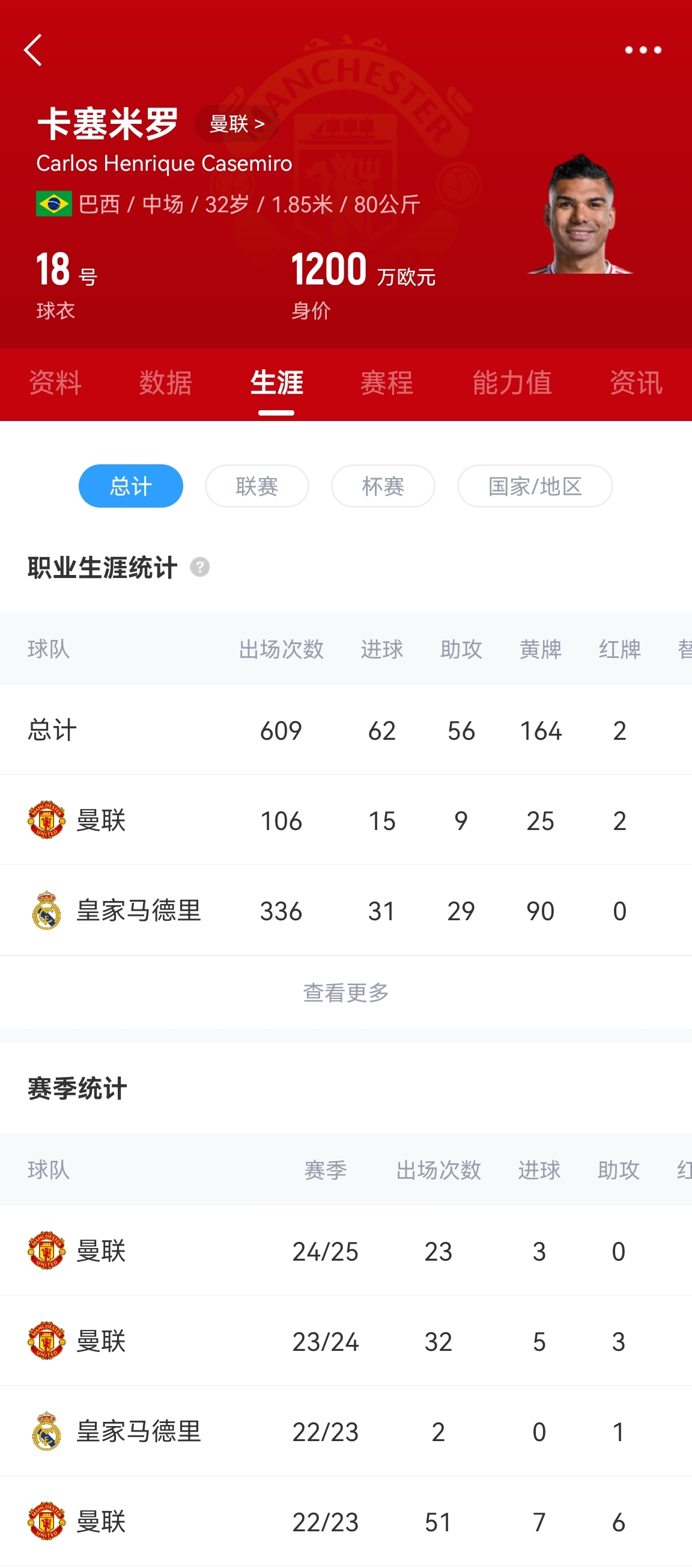 據悉,曼聯(lián)希望從卡塞米羅身上回收2000萬歐元,但考慮他的年齡和高工資,這一數(shù)字似乎沒有球隊能夠接受。
