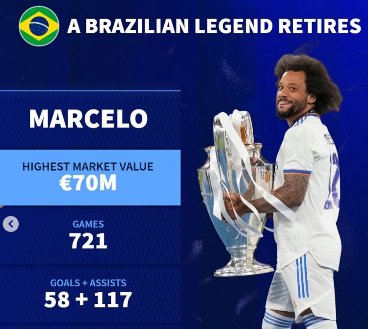 2月7日訊 皇馬傳奇左后衛(wèi)馬塞洛已經(jīng)官宣退役,《轉(zhuǎn)會(huì)市場(chǎng)》也列出了馬塞洛的生涯成就。