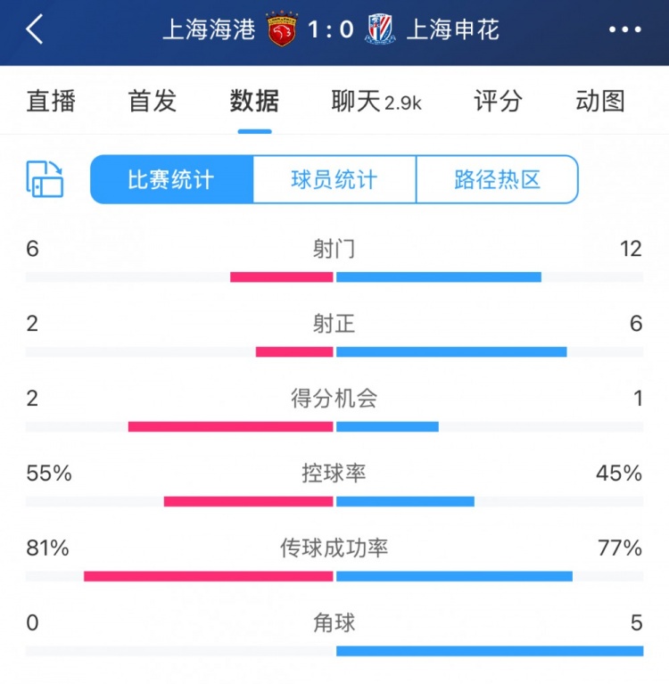 2月7日訊 2025中國(guó)超級(jí)杯賽,上海海港憑借新外援加布里埃爾的破門,在上半場(chǎng)1-0領(lǐng)先申花。半場(chǎng)數(shù)據(jù)方面,落后的申花更有優(yōu)勢(shì),但海港把握機(jī)會(huì)的能力更強(qiáng)。