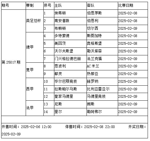 春節(jié)假期結(jié)束,本周末歐陸賽事繼續(xù)進(jìn)行,傳足勝負(fù)彩第25017期競猜賽事為英足總杯、德甲、意甲、西甲和法甲,其中不乏豪門,最引人關(guān)注的無疑是馬德里德比,這也是西甲榜首大戰(zhàn)。