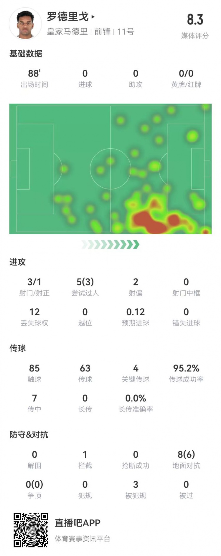 2月9日訊 皇馬在本輪西甲對陣馬競,羅德里戈本場數(shù)據(jù)如下:首發(fā)出戰(zhàn)88分鐘85觸球63傳球、60成功,成功率95%4關(guān)鍵傳球7傳中、2成功1創(chuàng)造重大機(jī)會3射門、1射正5過人、3成功8對抗、6成功12丟失球權(quán)3造犯規(guī)1攔截獲評8.3分 本文標(biāo)簽: 足球 西甲 皇家馬德里 馬德里競技