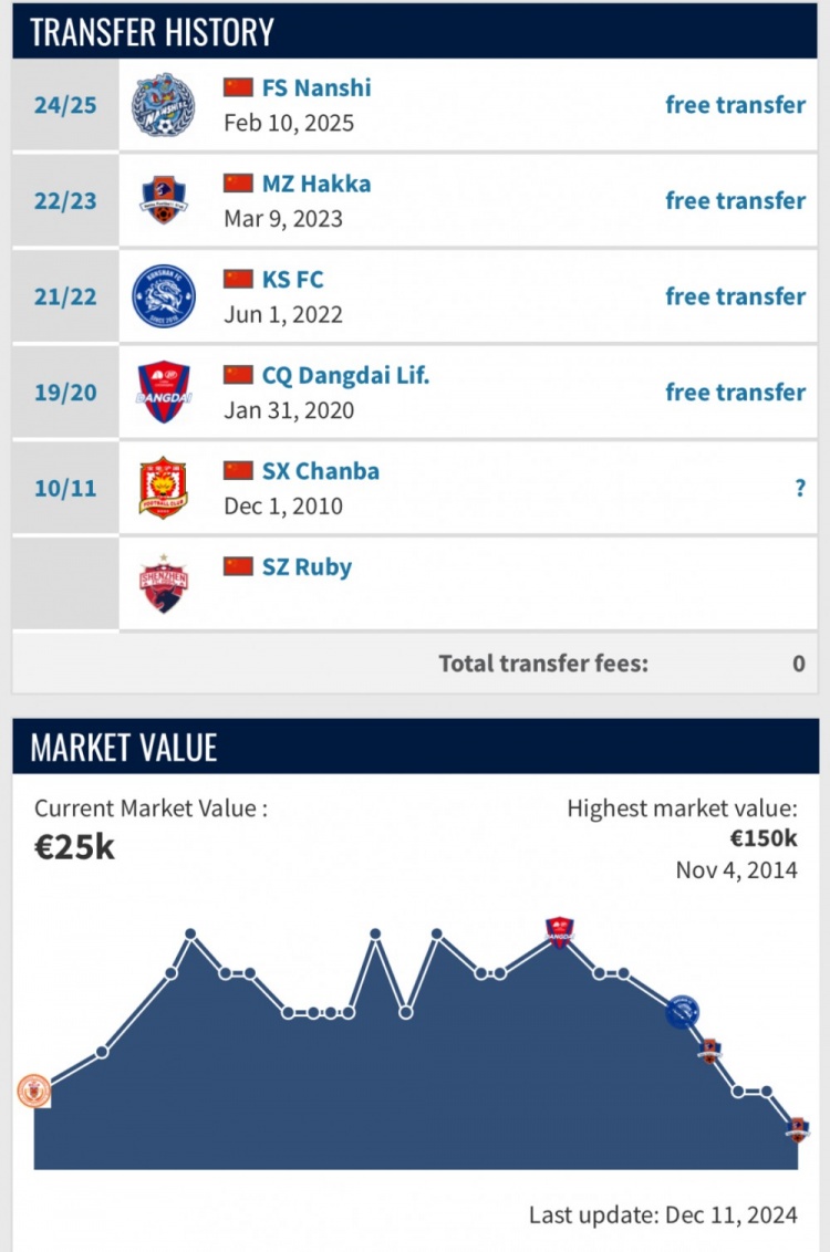 在德轉(zhuǎn)陳杰的個人頁面中,他已經(jīng)于2月10日加盟佛山南獅,不過合同年限并未披露。本次陳杰屬于自由身轉(zhuǎn)會,因此佛山南獅無需支付轉(zhuǎn)會費用。